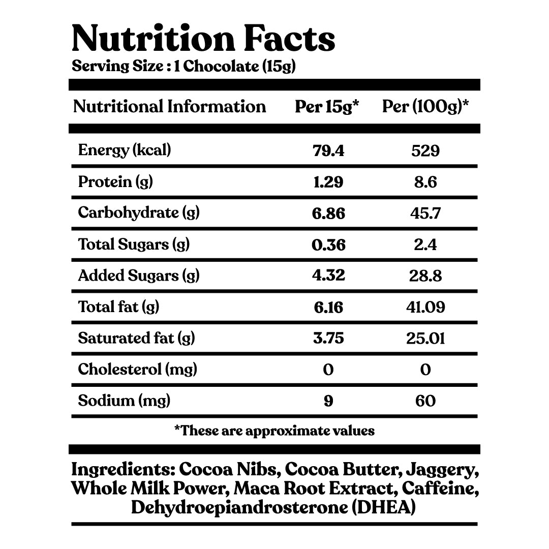 Indulge in a rich, premium dark chocolate experience with Kalories™ Dark Chocolates, crafted with 55% cocoa, Epimedium, Maca root, and DHEA. Designed to support vitality and well-being, our chocolates offer a natural energy boost for those special moments.
